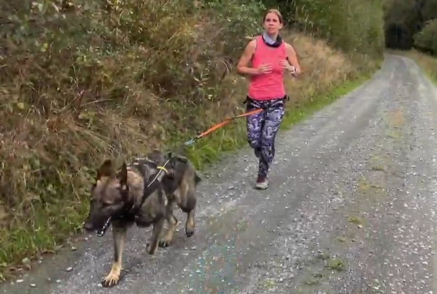 Was du sonst noch brauchst? Dem Wetter angepasste Outdoor- / Sportkleidung und Sportschuhe mit etwas Profil, da wir teilweise abseits von befestigten Wegen gehen. Unsere Hunde sind während des Kurses immer angeleint. Am besten geeignet ist eine Joggerleine, also ein Hüft-/Bauchgurt für dich, an dem du die Leine befestigen kannst, damit deine Arme frei sind. Wenn dein Hund locker mit dir läuft, reicht ein gutsitzendes Halsband, besser jedoch ist ein Geschirr. Ein ausreichender Impf- und Versicherungsschutz für deinen Hund setze ich voraus. Und pack Leckerlis ein.